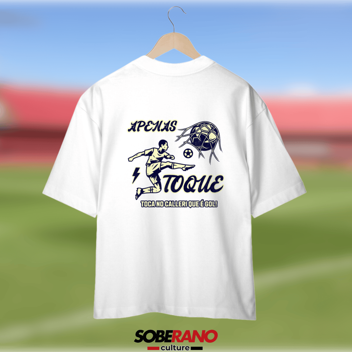 Apoie o seu ídolo e celebre a paixão pelo São Paulo com a Camisa Oversize Soberano Culture – "TOCA NO CALLERI"! Esta peça é uma homenagem ao grito da torcida que ecoa nas arquibancadas, trazendo a energia e a emoção de cada partida.